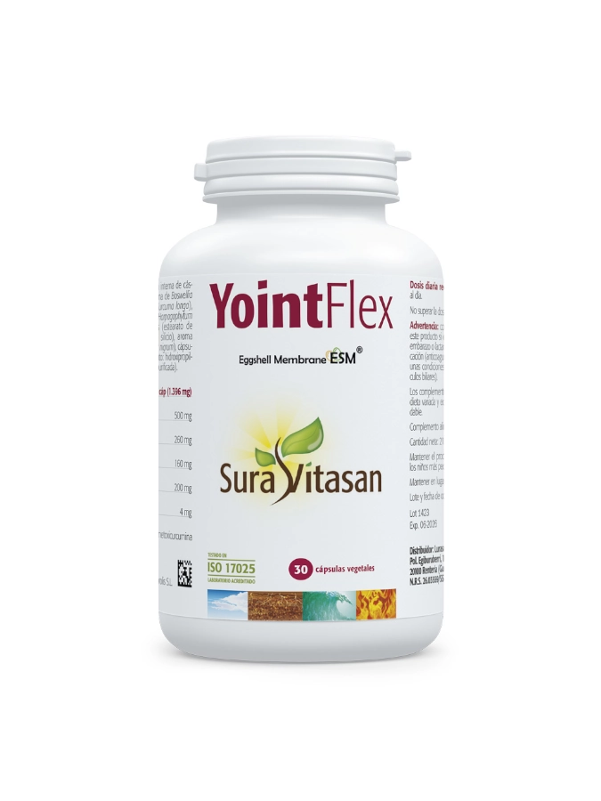 Yoint Flex é uma fórmula sinérgica com Eggshell Membrane® (ESM®) e extractos normalizados de boswellia, garra-do-diabo, curcuma e piperina.